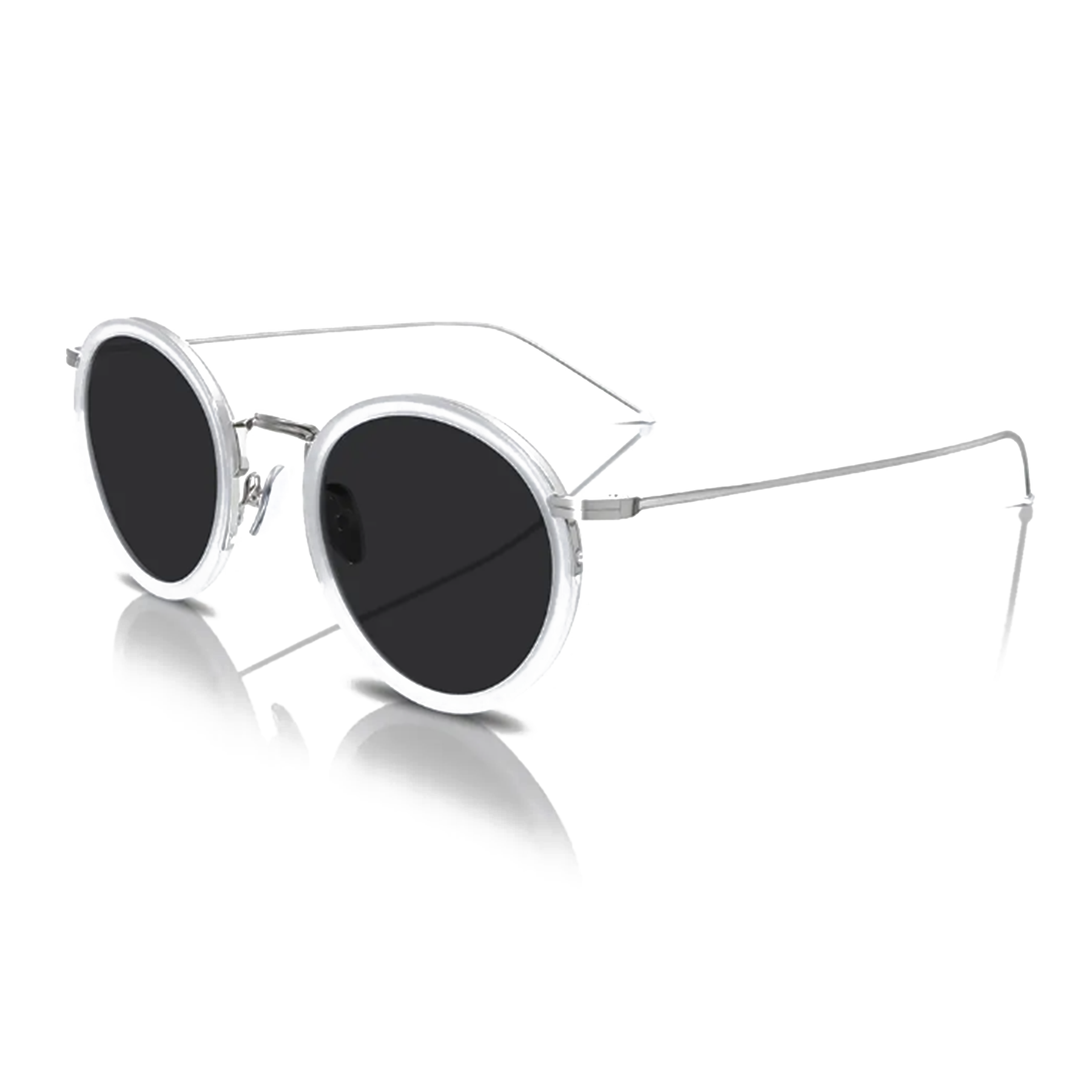 The sleek round-frame design and high-fashion white and silver palette create a look that is effortlessly chic and timelessly elegant. The hand finished construction ensures a lightweight yet durable feel, allowing for seamless wear from day to night. Whether you're strolling through the city, attending a stylish brunch, or lounging in a coastal getaway, the Clara sunglasses add an instant touch of sophisticated glamour to any outfit.